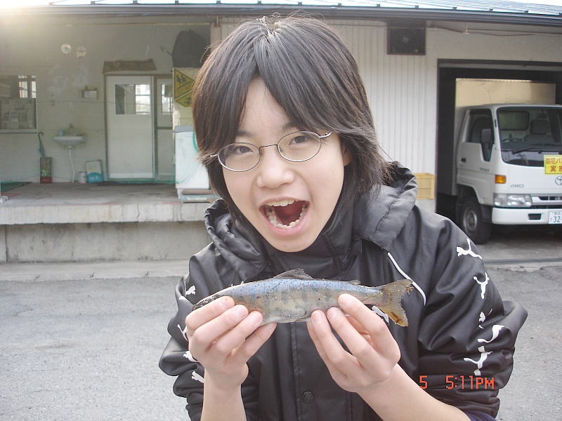 朝7時半位に出発。大山の道の駅で川虫を捕る。ちひろにメール。数日前キッズ携帯を買い与えた。まず、凍えた消防団の前後で唐揚げサイズ一匹ずつ。ここの砂地で転んで、背中から水が入りひやり。ああ、恐かった。しかし、思ったほど寒さに震えるほどではなかったし、一旦チェックインする時間がもったいなかったので、移動後駐車場で着替えてめげずに「たまり」。相変わらず駄目。直入荘で温泉で暖まる。三星へ。マスター・ママの子供達も店内でくつろいでいて、家族団らん状態。まずビールから。ここの生ビールは泡がクリーミーでうまい。秘訣はビールサーバーをこまめに掃除することだそうだ。テレビでNG特集を見ながら、美味しく飲み食い。ちゃんと門限前に宿に戻った。翌日、朝6時出発のつもりが体が寒くて重たい。やはり昨日背中から水に濡れた後、すぐに温泉で体を温めるべきであったか?7時半前に出発。黄金弁当がなんと閉まっている。朝飯抜きでO病院裏へ。例の配水管のポイントでまたヒット。慎重に引き寄せていたが、あと少しのところでばらしてしまった。これで二度目だ。悔しい。しかしこの場所には大物がいることがわかった。小たまりでヒット。引き抜く。良い型だ。よしよし一匹釣れてまず安心。小たまりには他にはいなかった。真ん中にドラム缶が沈んでいる。水は透明すぎだ。向こう岸に回るが全く反応なし。焼き畑をしたあとで、非常に歩きやすかった。配水管の場所に戻って川虫取り。簡単に大きめの川虫がたくさん取れる。これは良い場所を覚えた。(このとき右手袋を川州に忘れる)。100メートルほど下流の橋から川に入って遡上。全くいないと諦めたが、最後まで行かないと上に上れないことが判明。それで最後の1カ所に竿を出すとなんと24センチが釣れた。最後まで諦めちゃだめですね。これで2匹。合計4匹。置き忘れた手袋を回収。下流に残した車に戻ると、武田先生から電話の着信歴有り。メーリングリストが止まっていると。でもどうしようもない。農協で遅い昼飯。カップ麺のお湯を入れてもらう。この頃雲行きが怪しくなる。敬三叔父に電話。叔父は今回の釣行を断念する。