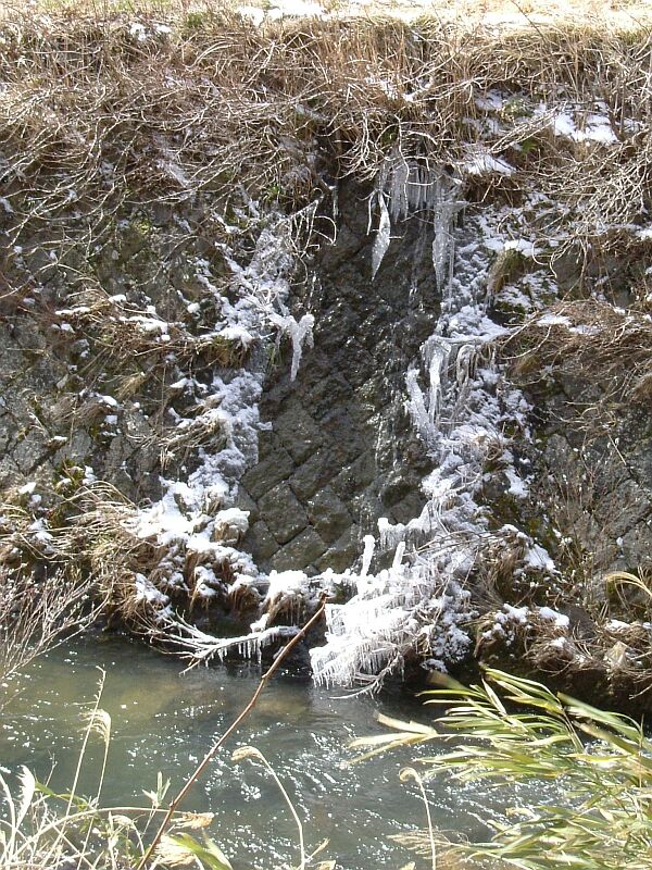 あとは玉来川を上って帰路に着くことにする。途中一箇所試したが、ダメ。川への流れ込みがつららになっていた。ここで、チェーンを外す。もう、日がサンサンと降り注いでいた。日田に寄ることにして久住はあとにする。「かがみ」でそばを食べた。予約が2グループ入っていて、対応が遅かった。店は12時を過ぎていたのに「準備中」がかかっていたから何かあるなとは思ったが。スタンプ5個溜まっていたので、皿そば一人前は無料で食べた。それで2枚追加した。日田は何度もそれらしい場所を探ってみるが、どうもわからない。釣り人かもしれない車が2台、止まってはいたが、、、。一箇所トライしたがダメだった。私道にも入ってみたが、、。