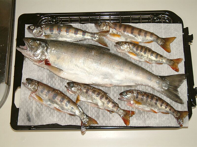 ニジマスの味は、ほぼヤマメと同じ。ただ、腸?なのか、内臓に白くねじれたようなものがある。それに鱗が多く固い。全体に骨が大きく数も多い。やっぱり釣りとしても、食べ物としてもヤマメが一番。